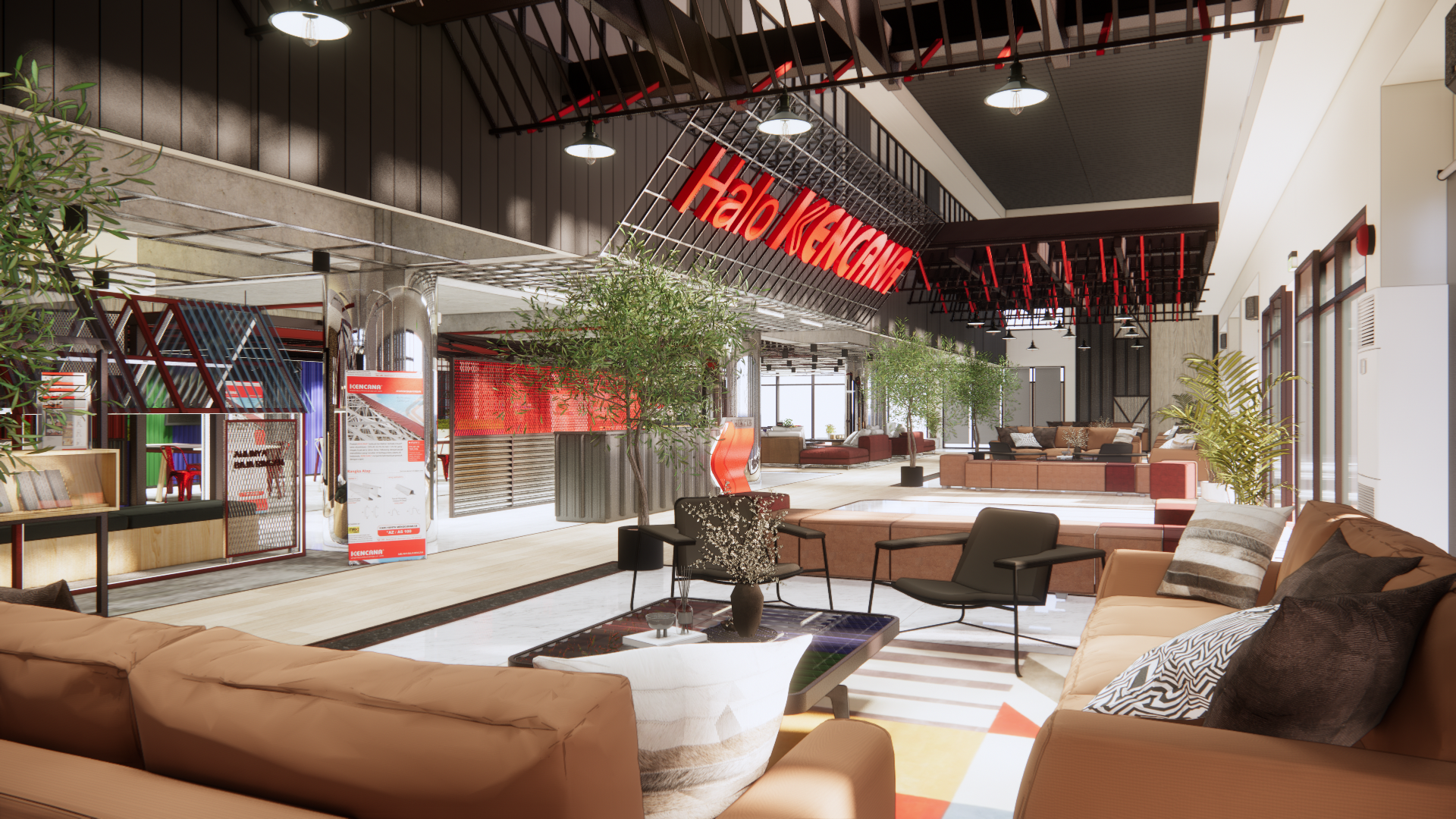 Library's collection Library's IT development CancelPembangunan infrastruktur di Indonesia menjadi fokus utama pada era pemerintahan Presiden Joko Widodo. Hal ini dinilai menjadi salah satu fondasi untuk mewujudkan visi Indonesia Maju. Dikatakan sebagai induk dan tulang punggung industri, industri baja memiliki peran besar yang positif bagi keberlangsungan pembangunan dan perkembangan sektor industri lainnya. Selain itu, semakin terbatasnya ketersediaan sumber daya alam material kayu membuat produsen bidang pembangunan dan konstruksi untuk mencari alternatif material. Baja ringan hadir sebagai alternatif material yang masih tergolong baru dalam dunia konstruksi. Sehingga dibutuhkan sarana untuk mengenalkan masyarakat mengenai baja ringan yang ber-SNI lewat produk KENCANA. Perancangan ini mengadopsi metode berpikir kreatif Design Thinking oleh d.school ParisTech dengan 9 tahapan sebagai berikut: Understand, Observe, POV, Ideate, Prototype, Test, Story Telling, Pilot, dan Business Model. Melalui perancangan ini, dihasilkan inovasi dan inspirasi dalam desain interior yang mengimplementasikan produk baja ringan KENCANA dalam elemen interior dan perabotnya. Perancangan interior lobi dan showroom baja ringan ini juga mengekspresikan merek lewat aplikasi produk baja ringan KENCANA lewat material, tekstur, warna, bentuk, dan visual brand KENCANA secara seimbang. Tujuannya untuk memberi pengalaman ruang yang atraktif dan informatif bagi pengguna ruanglewat implementasi baja ringan KENCANA ke dalam interior.