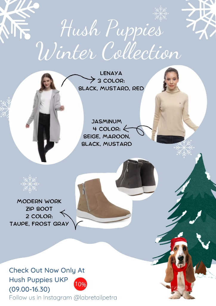 Dalam rangka menyambut hari Natal 2022, Hush Puppies yang dikelola oleh Program Manajemen Kepariwisataan UK Petra, mengadakan potongan harga (diskon) sebesar 10%.