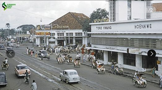 Toko Kwang dan toko Nam di jalan Tunjungan, Surabaya di sekitar tahun 1960
