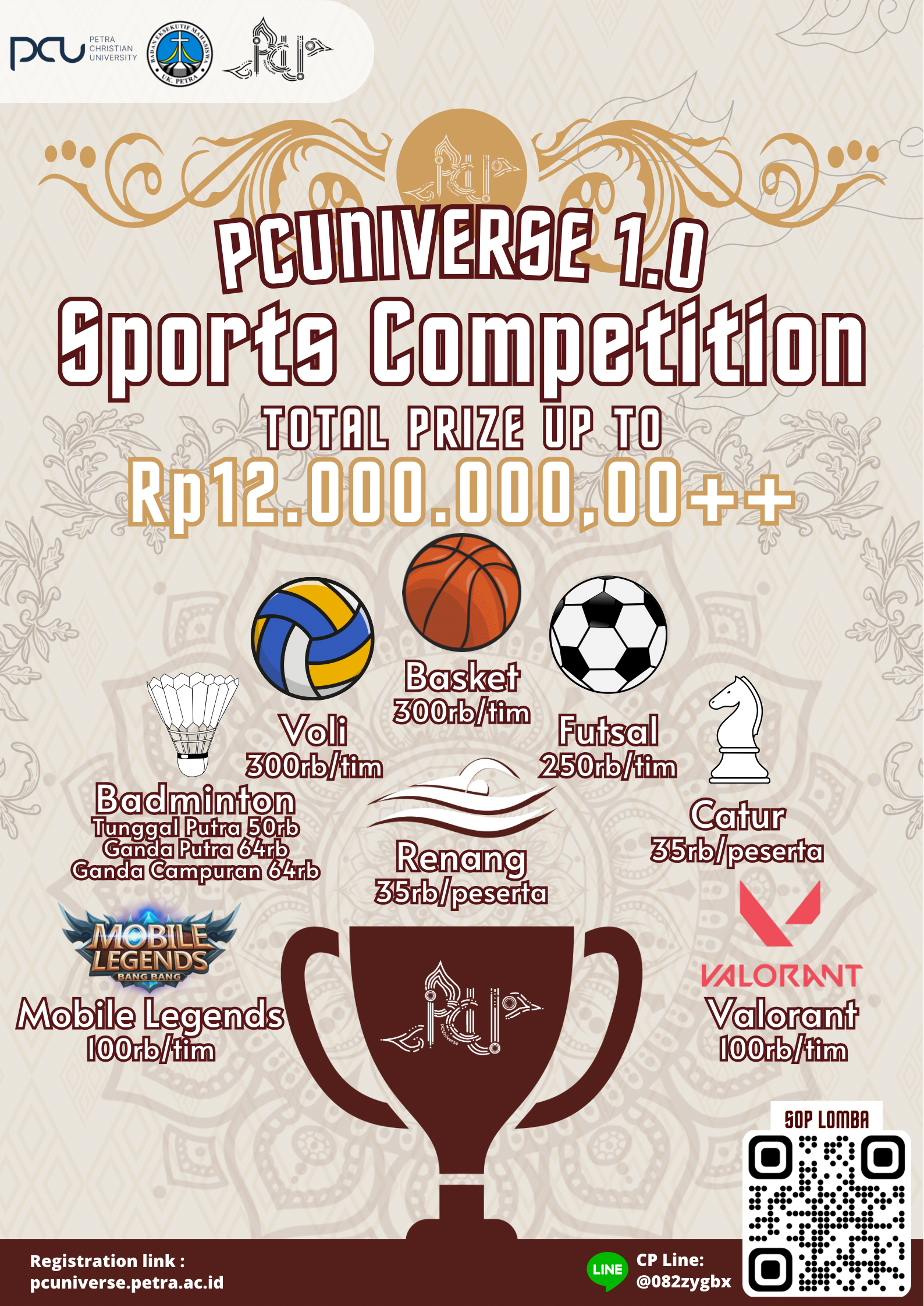 Library's collection Library's IT development CancelBadan Eksekutif Mahasiswa Universitas Kristen Petra Surabaya, mengadakan berbagai macam lomba yang digabung dalam acara yang diberi nama PCUniverse 1.0. Dengan memperebutkan total hadiah 12.000.000 Rupiah.
