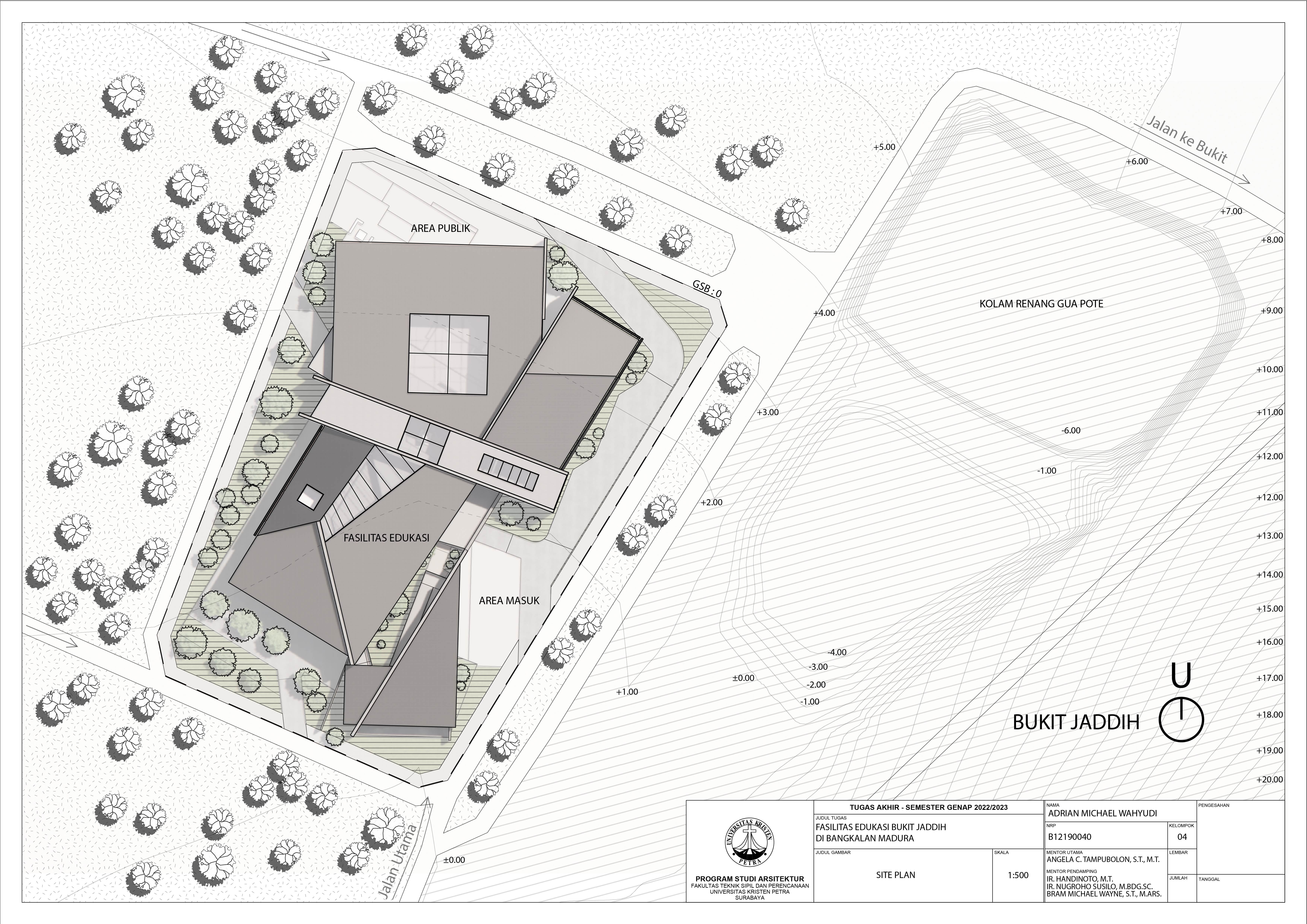 Library's collection Library's IT development CancelBukit Jaddih adalah sebuah kawasan bukit batu kapur yang terletak di Kabupaten Bangkalan, Madura. Bukit Jaddih memiliki daya tarik dan menjadi perhatian pengunjung yang bepergian pada area Madura. Bukit Jaddih memiliki potensi, khususnya pada bidang edukasi, seperti geografi tempat, geologi tempat, dan material bukit yang berupa batu kapur. Namun, informasi mengenai Bukit Jaddih cenderung sedikit, ditambahkan Bukit Jaddih saat ini berupa area tambang batu kapur. Aktivitas pariwisata pada Bukit Jaddih menjadi mengkhawatirkan dengan adanya pertambangan, sehingga tidak didukung oleh pemerintah untuk dijadikan area pariwisata yang digunakan penduduk setempat sebagai mata pencaharian. Perencanaan fasilitas edukasi bertujuan untuk memberi area edukasi alternatif mengenai Bukit Jaddih tanpa menghilangkan Bukit Jaddih sebagai objek utama. Pada desain, pengunjung dapat belajar mengenai Bukit Jaddih, pertambangan, dan batu kapur dengan aman dan informatif. Fasilitas tersebut mengakomodasi ruang edukasi, workshop, studio, dan area publik untuk kantin dan ekshibisi tambahan. Dari perencanaan desain, pendekatan yang digunakan adalah pendekatan spasial menggunakan teori Affordance. Tujuannya untuk menyediakan ruang yang menyerupai ruang Bukit Jaddih sebagai tempat berlangsungnya kegiatan edukasi, menggunakan Affordance Bukit Jaddih yang dijadikan karakteristik pada ruang. Pada saat pertambangan di Bukit Jaddih selesai, fasilitas juga dapat menjadi area rekapan perkembangan dan pembelajaran mengenai perubahan yang terjadi.
