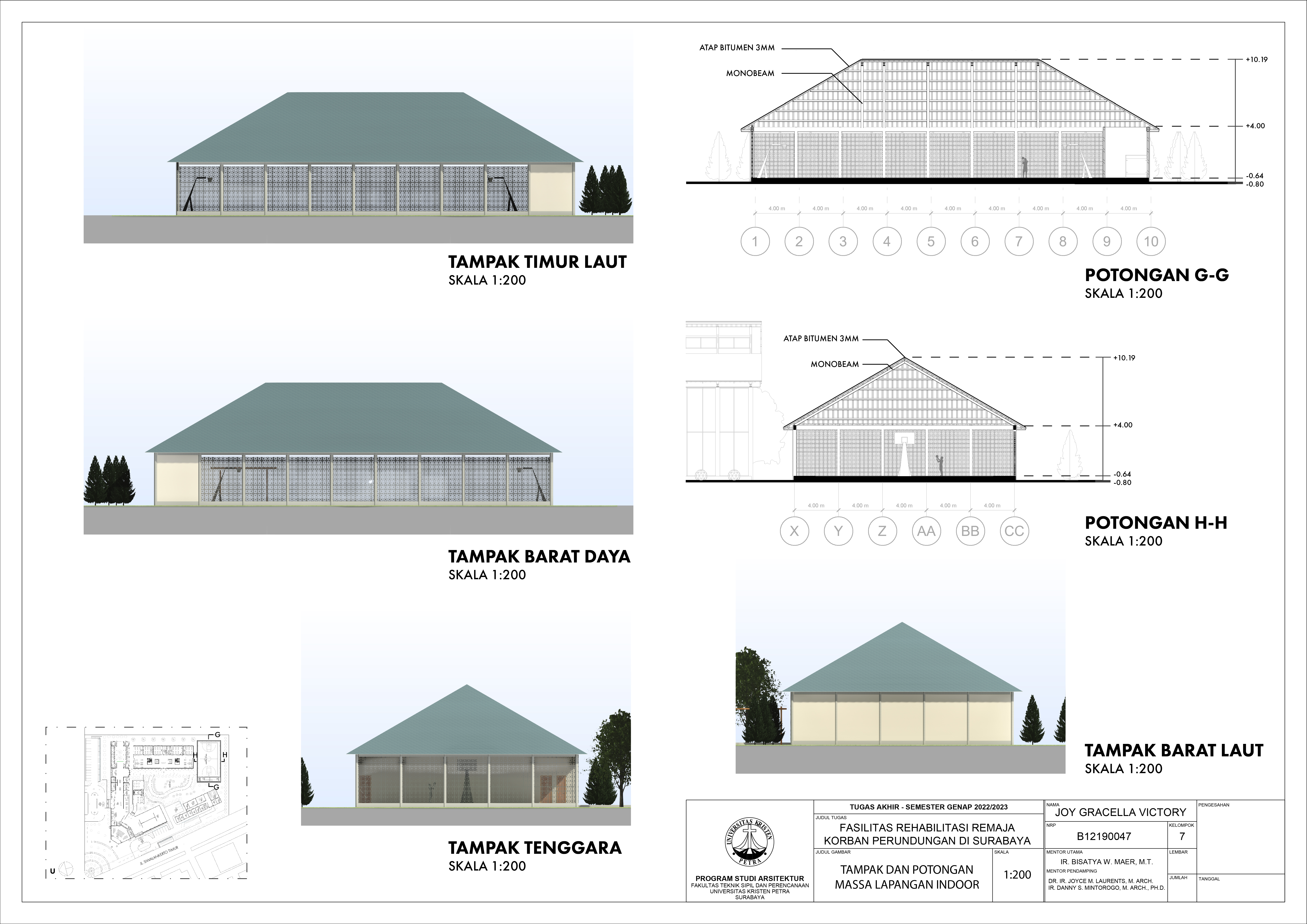 Library's collection Library's IT development CancelPerundungan merupakan suatu perilaku menyakiti orang lain, baik secara verbal, fisik, ataupun sosial di dunia nyata maupun dunia maya dari waktu ke waktu. Tidak sedikit remaja yang mengalami perundungan selama masa hidupnya dan meninggalkan memori yang buruk. Fasilitas Rehabilitasi Remaja Korban Perundungan di Surabaya bertujuan untuk menjadi sarana dan wadah bagi remaja korban perundungan agar mereka dapat kembali beraktivitas dengan normal. Program untuk rawat jalan terbagi menjadi 3, yaitu learning, sharing, dan practice. Masalah desain dalam desain perancangan adalah bagaimana cara menciptakan fasilitas yang mampu memberikan rasa aman, suasana nyaman, dan privasi dengan tetap memperhatikan perilaku korban perundungan agar remaja korban perundungan dapat pulih dan bertumbuh. Pendekatan desain yang diambil adalah pendekatan perilaku remaja korban perundungan yang merupakan pengguna fasilitas ini. Sesuai dengan karakter remaja korban perundungan yang membutuhkan rasa aman dan nyaman, maka desain terbentuk banyak area komunal untuk pengguna dapat saling berbagi dan menguatkan. Diharapkan fasilitas ini dapat meningkatkan kesehatan mental remaja korban perundungan di Indonesia.