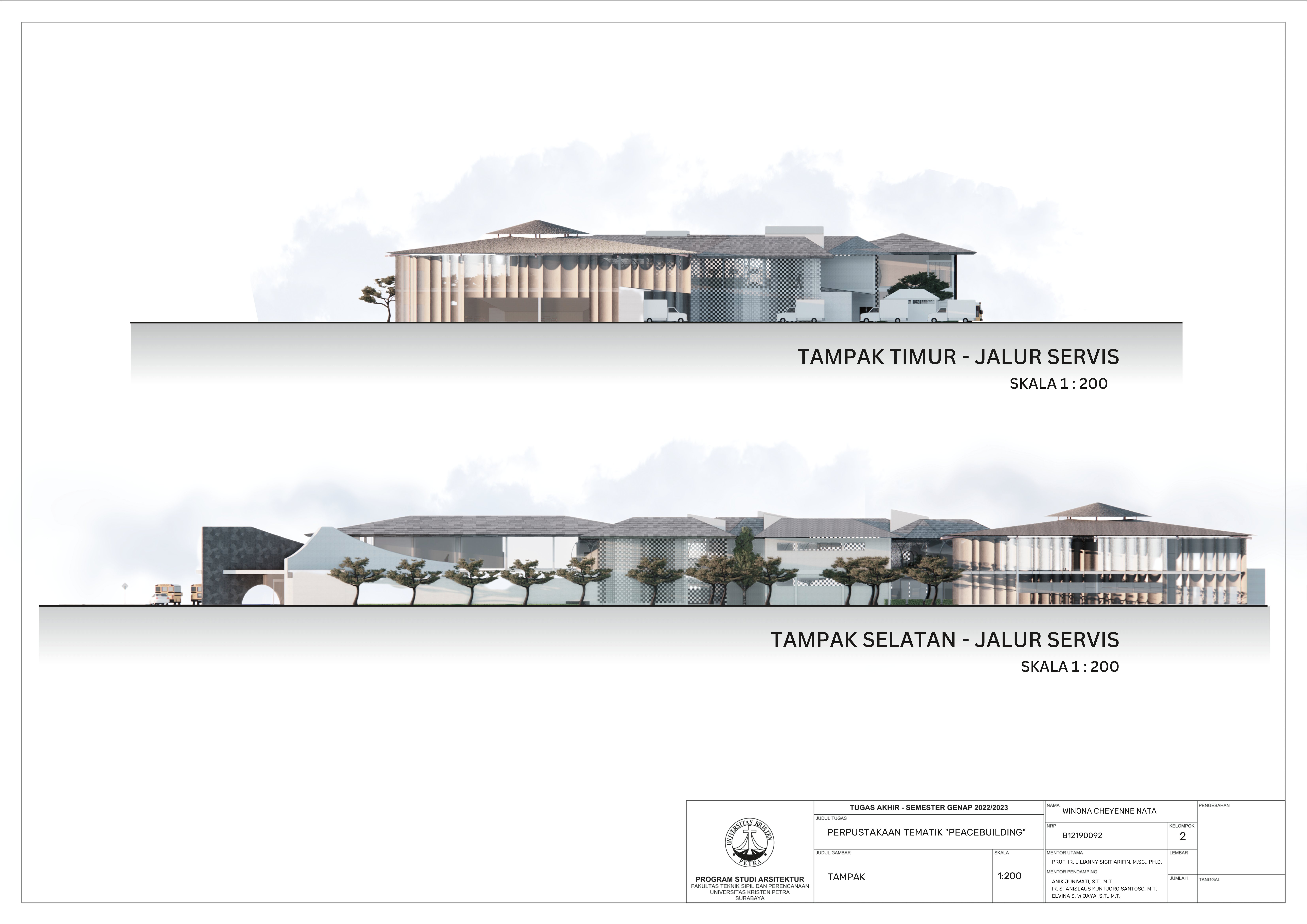 Library's collection Library's IT development CancelKerusuhan politik dan sosial di Indonesia disebabkan oleh perbedaan keyakinan agama di masyarakat. Peristiwa yang terjadi mencakup serangan teroris, kerusuhan oleh organisasi masyarakat yang radikal, serta tindakan intimidasi dan perlakuan tidak adil terhadap penganut agama lain. Untuk mengatasi masalah ini, diperlukan upaya peacebuilding yang bertujuan menyatukan kelompok-kelompok masyarakat yang terpecah belah, sehingga mereka dapat saling memahami dan bersatu kembali. Berdasarkan Contact Theory, salah satu strategi untuk mengurangi intoleransi ini adalah melalui interfaith dialog atau dialog antar iman. Oleh karena itu, perpustakaan tematik peacebuilding yang didirikan tidak hanya menyediakan buku, tetapi juga menjadi tempat yang mendorong pengunjungnya untuk saling berdialog dan memberikan pendidikan tentang agama dan kepercayaan yang berbeda. Konflik yang sehat dibutuhkan untuk perdamaian yang berkelanjutan, dan toleransi hanya muncul saat masyarakat sadar perbedaan. Peace merupakan suatu hal yang intangible, sehingga pendekatan simbolik dipilih untuk proses perancangan. Maka dari itu, konsep perancangan diambil dari fase-fase peacebuilding, yaitu konflik, dialog, dan kolaborasi. Ketiga fase ini diterjemahkan kedalam bahasa visual dan dimasukan ke dalam site. Terciptalah sekuens yang linear, dari massa konflik, massa dialog, hingga massa kolaborasi. Setiap massa memiliki tujuan dan masalah desainnya masing-masing. Massa konflik untuk menunjukan perbedaan dan memancing rasa penasaran, massa dialog untuk belajar dan berdialog bersama, dan massa kolaborasi sebagai tempat bertukar pikiran untuk menjadi wadah kegiatan komunitas setempat. Ketiganya saling bekerja sama untuk mencapai intensi desain utama bangunan, yaitu untuk mendorong perdamaian, toleransi, dan kesatuan antara beragam-ragam kubu agama yang ada di Indonesia.