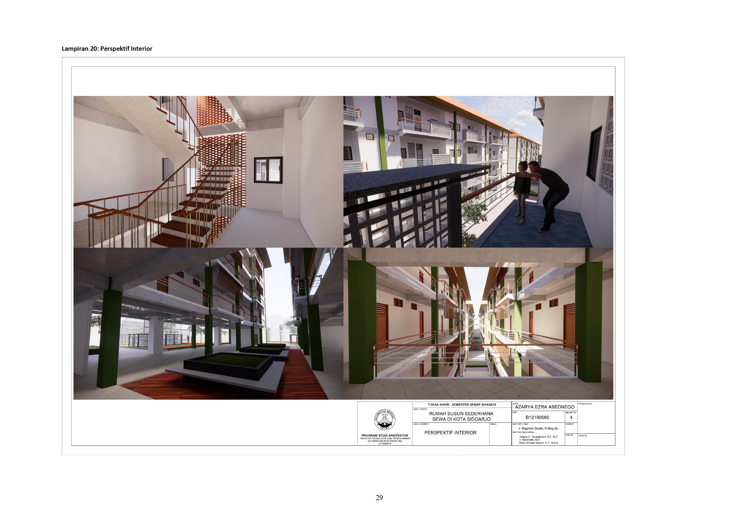 Library's collection Library's IT development CancelInflasi yang terjadi di Indonesia beberapa tahun terakhir memberi dampak yang cukup buruk untuk masyarakat Indonesia. Inflasi yang mempengaruhi segala aspek, salah satunya aspek ekonomi yang akhirnya juga mempengaruhi bagaimana masyarakat Indonesia memenuhi kebutuhan sandang, pangan, dan papan mereka. Kebutuhan papan atau kebutuhan akan tempat tinggal juga merupakan masalah yang sudah dialami masyarakat khususnya masyarakat kelas menengah ke bawah. Melonjaknya harga properti membuat masyarakat Indonesia semakin sulit untuk memenuhi kebutuhan papan tersebut. Pemerintah sendiri sudah memberi alternatif berupa rumah susun sewa sederhana yang dikhususkan untuk masyarakat kelas menengah kebawah. Rumah susun sederhana sewa sendiri yang sudah terealisasi cenderung memiliki kesan yang negatif dan sering disalahgunakan. Seperti contohnya banyak rumah susun yang ada di Kota Sidoarjo yang tidak terawat, terbengkalai, disalahgunakan untuk kegiatan asusila, dan masih banyak lagi. Oleh karena itu desain rumah susun ini menggunakan pendekatan spasial dan sains untuk bisa mengatasi masalah-masalah rumah susun yang terjadi di Sidoarjo.