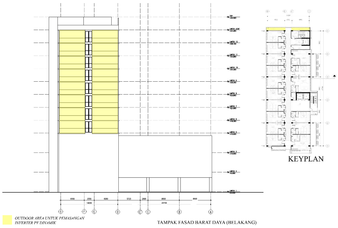 Library's collection Library's IT development CancelPenelitian ini dilakukan untuk mengetahui efektivititas panel surya dinamik yang diterapkan sebagai fasad ganda pada hotel aston sidoarjo. Penelitian ini bertujuan membantu mengurangi konsumsi energi listrik konvensional dan memanfaatkan potensi energi surya sesuai dengan kondisi geografis Sidoarjo. Hotel Aston dipilih sebagai studi kasus karena memiliki fasad kaca paten yang cukup luas dan berpotensi dikembangkan menjadi tempat penginstalan dual fasad fotovoltaik dinamik. Jenis penelitian bersifat kuantitatif dan deskriptif untuk mengumpulkan dan menyajikan data statistik seperti nilai iradiasi, efisiensi panel surya, dan sebagainya. Penelitian ini berusaha menyajikan desain fasad panel surya dinamik yang optimal dalam menangkap radiasi matahari. Oleh karena itu altitude menjadi elemen penting agar desain panel surya dapat berada pada posisi tegak lurus dengan arah datang matahari dan mendapatkan radiasi yang maksimum. Altitude juga berpengaruh terhadap hasil simulasi komputasi untuk mengetahui besar nilai iradiasi yang jatuh pada panel.