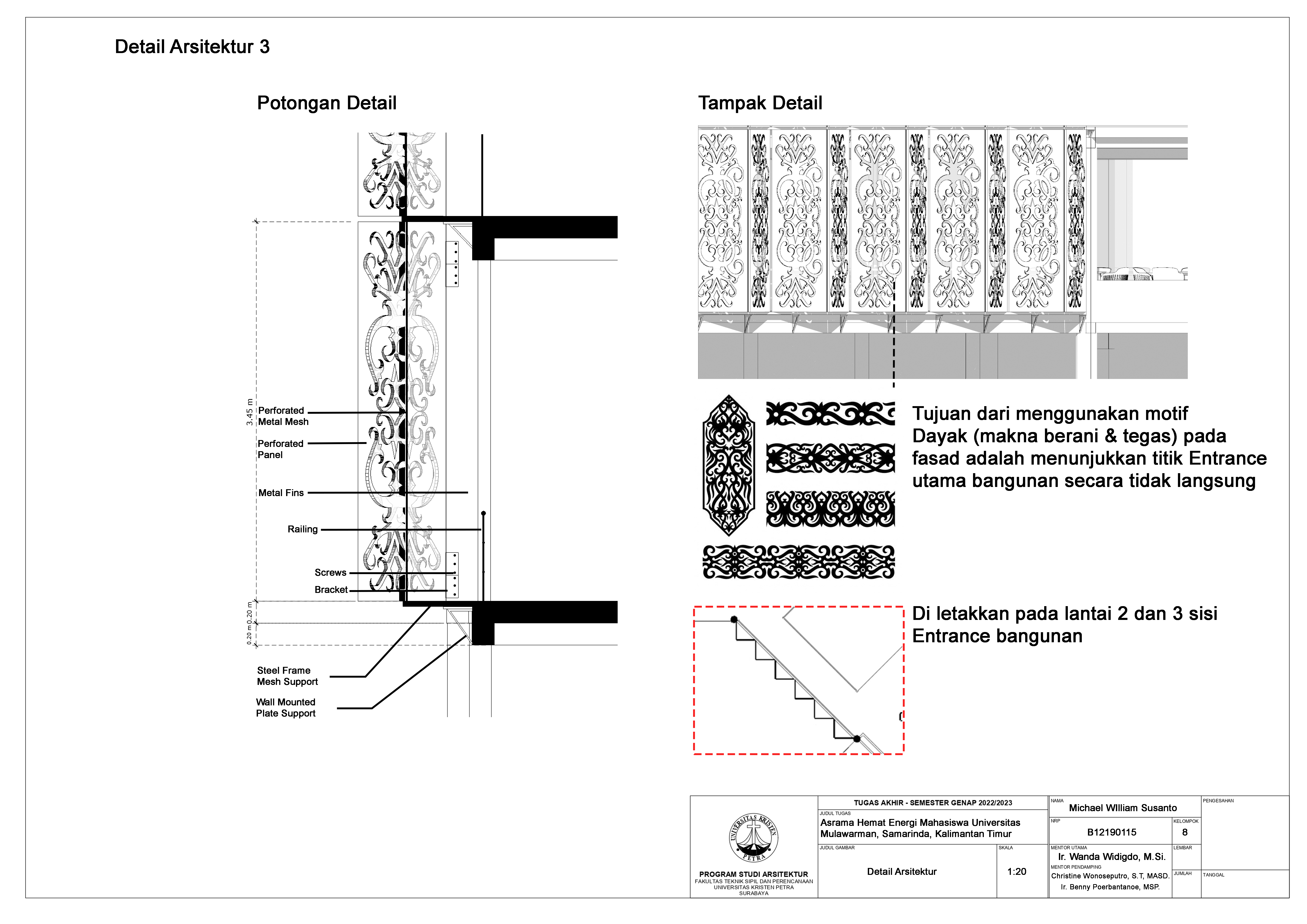 Library's collection Library's IT development CancelAsrama menurut KBBI adalah bangunan tempat tinggal bagi kelompok orang untuk sementara waktu, terdiri atas sejumlah kamar, dan dipimpin oleh seorang kepala asrama. Pada perancangan ini, Asrama ditujuan untuk Mahasiswa Universitas Mulawarman, Samarinda, Kalimantan Timur. Dilatar belakangi dengan beberapa permasalahan yang ada seperti: kebutuhan akan tempat tinggal, biaya kos yang tinggi, kos yang tidak dirancang dengan baik dan permasalahan energi. Tujuan dari perancangan ini adalah menyediakan fasilitas yang bisa membantu dan mendorong mahasiswa dalam kehidupan sehari-harinya, dan juga merancang asrama agar nantinya bisa menghasilkan energinya sendiri sehingga bisa menjadi bangunan yang berkelanjutan juga mendukung aktivitas penggunanya. Beberapa Faktor yang akan mempengaruhi dalam proses mendesain adalah konteks tapak terkait dengan aspek lahan, pencahayaan dan penghawaan; Teknologi yang akan coba diterapkan dalam upaya menghasilkan energi dan menghemat energi; aktivitas pengguna yang perlu diperhatikan agar dapat memenuhi kebutuhan dan kenyamanan pengguna. Sebagai Respon atas permasalahan diatas maka pendekatan yang akan digunakan pada Asrama ini adalah pendekatan Hemat Energi. Oleh karena itu, diharapkan dari perancangan ini dapat membantu mengatasi permasalahan yang ada tanpa mengurangi kenyamanan pengguna Asrama nantinya.