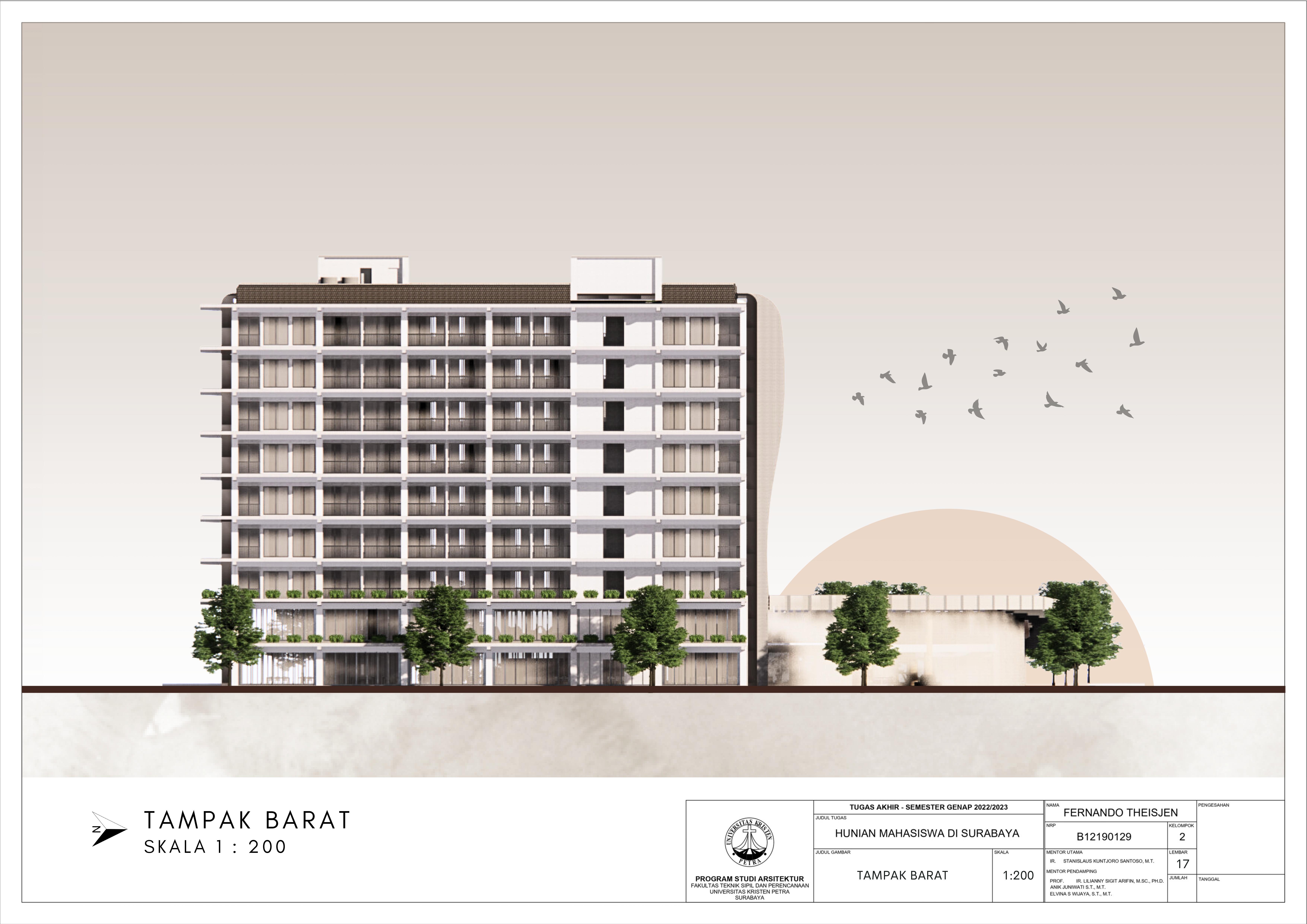 Library's collection Library's IT development CancelKota Surabaya sebagai salah satu kota terbesar di Jawa Timur yang menjadi tempat universitas ternama di Indonesia, Namun sebagian besar kebutuhan mahasiswa terutama yang memiliki tempat tinggal jauh dari kampus yaitu mereka membutuhkan kehadiran sebuah tempat hunian yang layak dapat mendukung aktivitas perkuliahan mereka dengan baik dan memberi dampak positif kepadanya. Selain itu untuk masalah yang dihadapi adalah keterbatasan tempat tinggal yang nyaman dan aman pada di lingkungan perkuliahan dan juga dengan adanya hunian mahasiswa yang berlokasi di sebelah kampus perkuliahan juga dapat mengurangi resiko menghindari kemacetan yang diakibatkan pengendara mobil ataupun bermotor di sekitar area kampus yang dapat menghadirkan perilaku mahasiswa yang ingin diterapkan untuk berjalan kaki menuju area kampus. Tujuan dari fasilitas yang direncanakan untuk meningkatkan aktivitas sosial dan aktivitas fisikal .Kemudian juga menyediakan hunian dan fasilitas pendukung yang nyaman, efisien, serta menjawab kebutuhan pengguna. Selain sebagai tempat tinggal namun mahasiswa bisa menggunakan fasilitas fasilitas co-working space sebagai area komunal yang dapat dapat mengurangi individualisme dan rasa jenuh. Perancangan bangunan asrama ini bertujuan untuk mempermudah mahasiswa tinggal di satu lokasi yang strategis di mana kebutuhan hidupnya dapat terpenuhi dengan fasilitas pendukung yang dapat memudahkan mahasiswa beraktivitas/ memenuhi kebutuhan mereka.