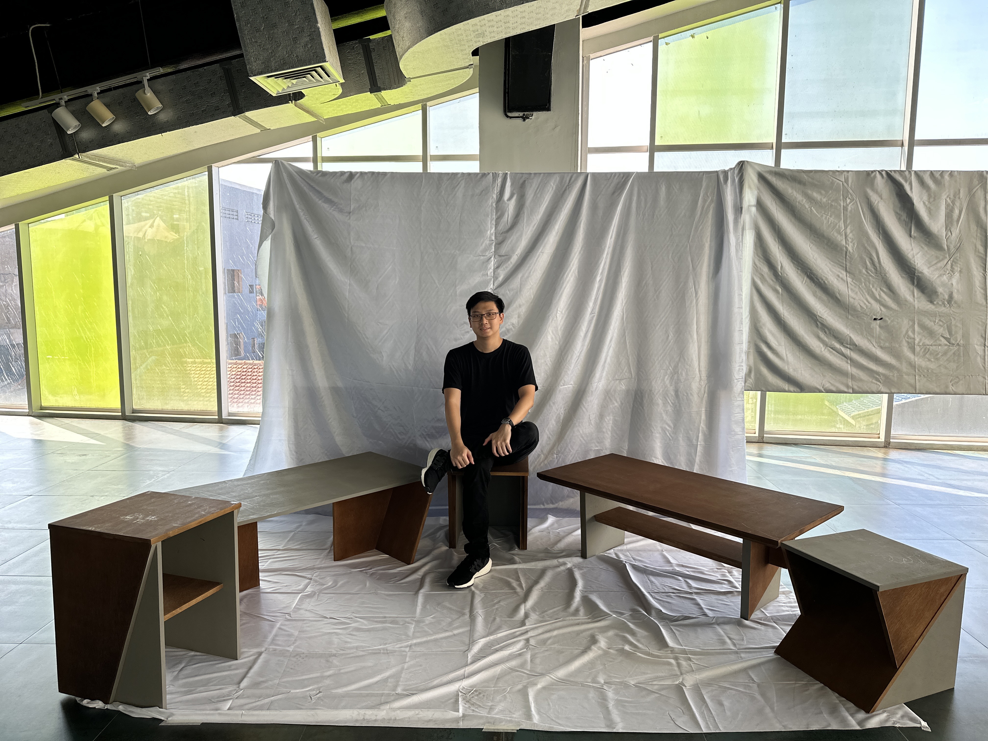 Library's collection Library's IT development CancelPopulasi manusia terus bertambah seiring dengan berjalannya waktu. Namun, ketersediaan lahan yang dapat ditinggali keberadaannya semakin sedikit sehingga berdampak pada penyempitan area untuk tempat tinggal baru. Furniture menjadi salah satu objek yang tidak bisa lepas dari suatu tempat tinggal, sehingga furniture yang memiliki fitur bongkar-pasang atau knockdown menjadi alternatif yang dapat mengurangi masalah penyempitan ruang tinggal. Perancangan ini bertujuan untuk menghasilkan furniture praktis dengan berfokus pada sistem konstruksi knockdown, seperti kemudahan dalam melakukan bongkar-pasang untuk kenyamanan pengguna, integritas bagian sambungan yang kuat serta efisiensi tempat penyimpanan jika sedang tidak dibutuhkan. Pada perancangan ini menggunakan metode Design Thinking yang terdiri dari tahapan empathize dengan melakukan survey dan studi literatur, define untuk menemukan problem statement dari analisis data, kemudian ideate untuk menemukan konsep desain, dilanjutkan dengan prototype dengan membuat produk skala 1:1, dan test untuk memperoleh feedback dari pengguna. Hasil dari perancangan adalah satu set furniture berupa coffee table, stool, serta side table dengan mengimplementasikan sistem knockdown yang dapat memudahkan aktivitas penggunanya.