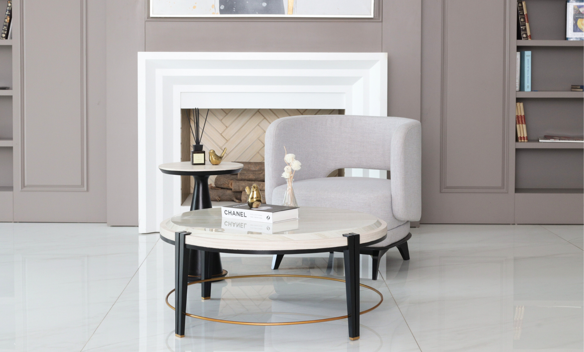 armchair, Rouco coffee table dan Rouis side table. Desain set perabot ini dirancang untuk produk
