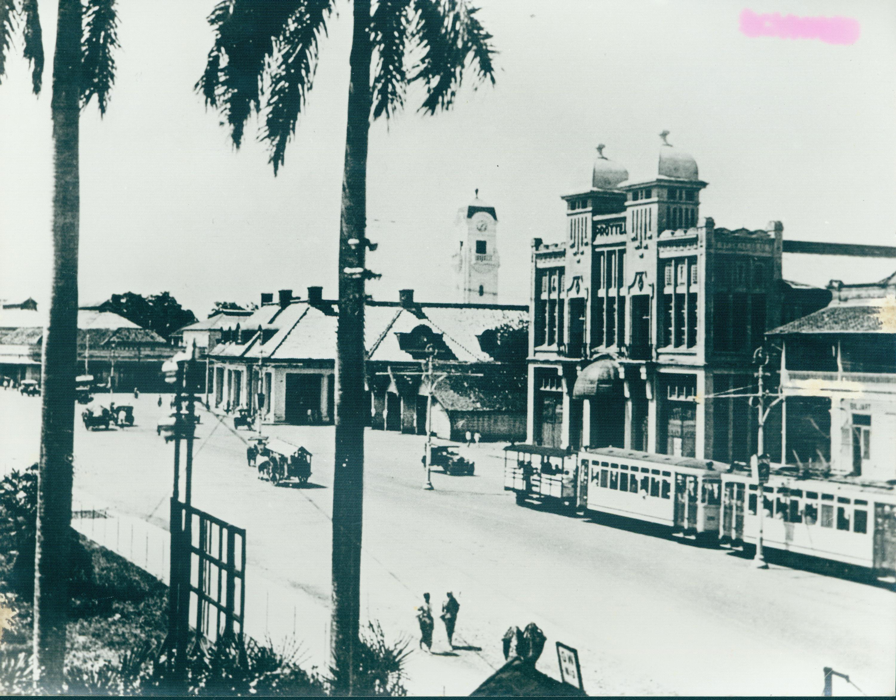Pemandangan lalu lintas di salah satu jalan di Surabaya sekitar tahun 1930